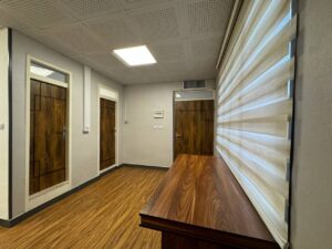 دیوارهای هر دو بخش (کارگاه و کلاس) با ماربل شیت پوشیده شدند. ماربل شیت علاوه بر ظاهر مدرن و زیبا، به راحتی تمیز میشود و مقاومت بالایی دارد.