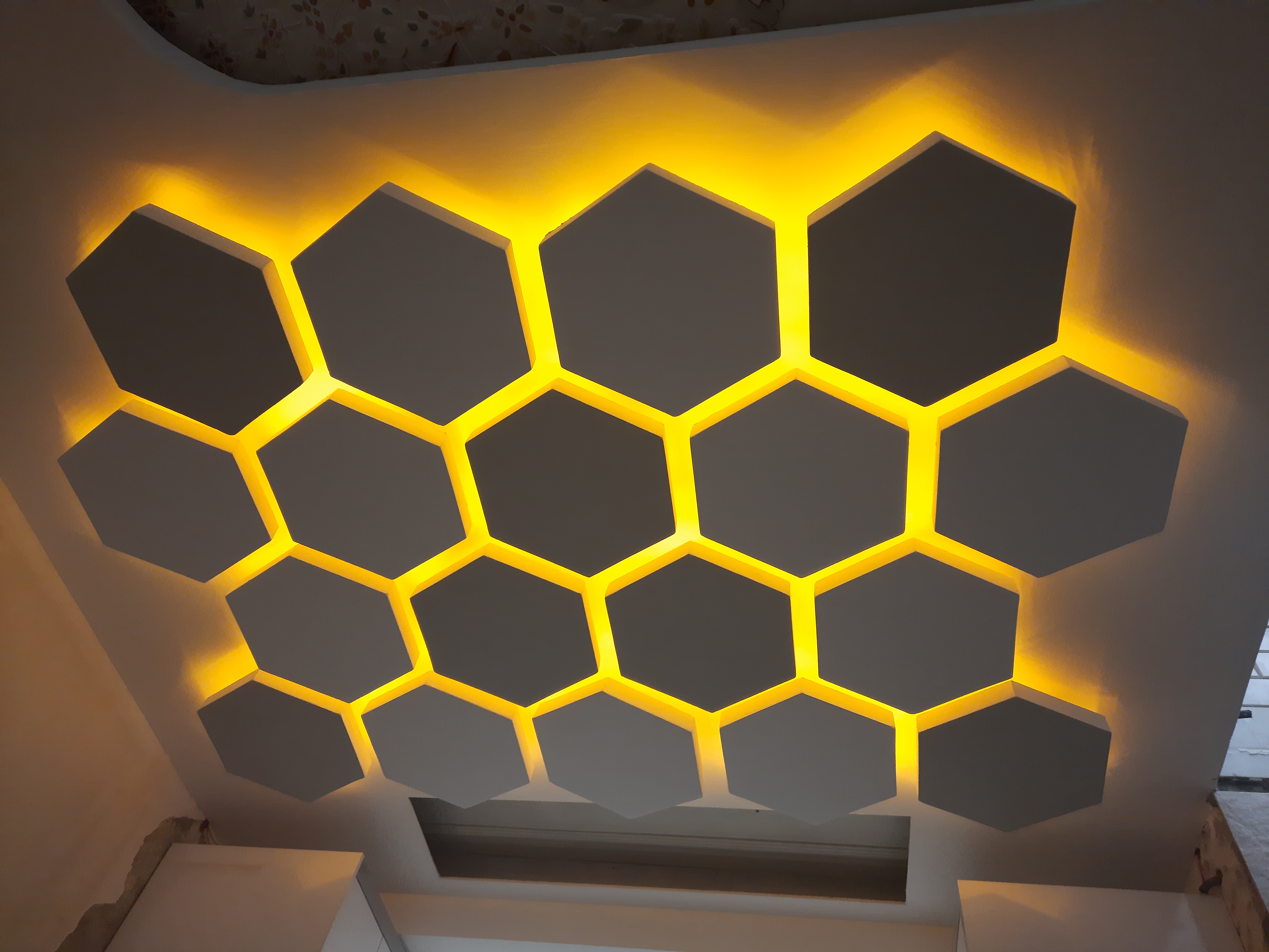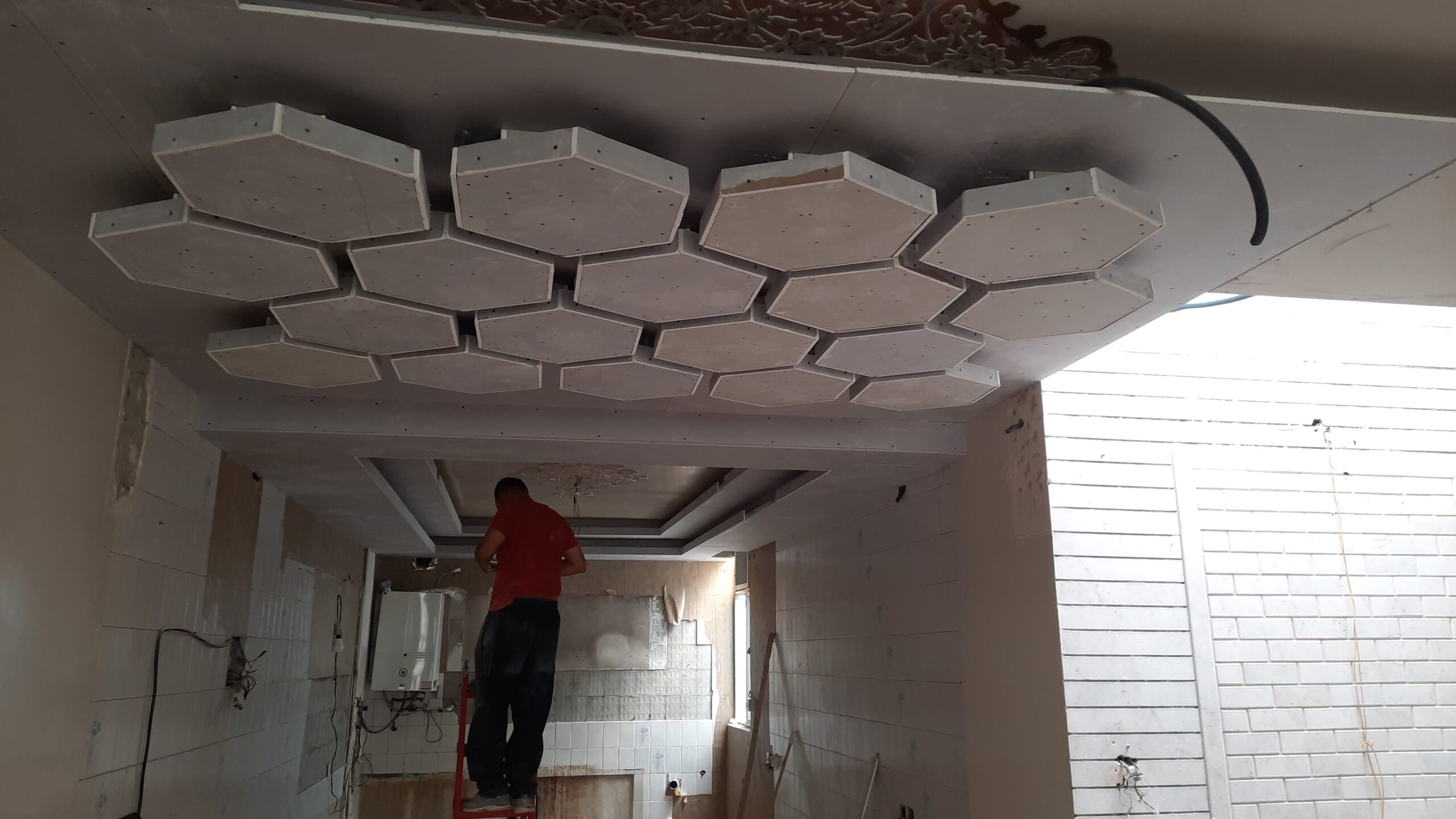 برای زیباسازی سقف و بهبود نورپردازی فضا، مراحل زیر اجرا شد: