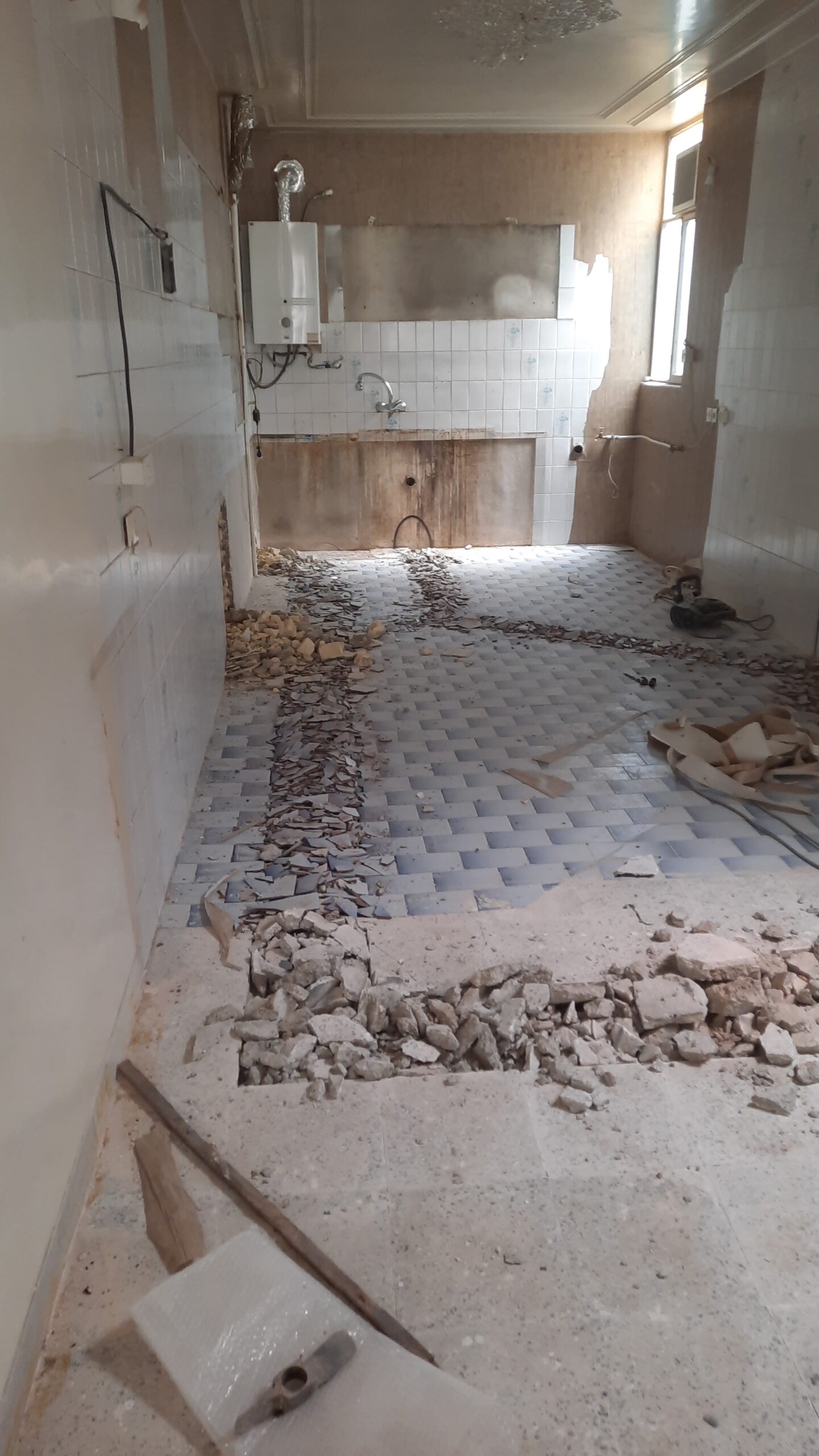 - تخریب سرویس بهداشتی و حمام به منظور بازسازی کامل